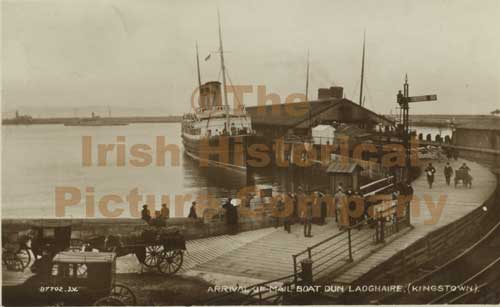 Arrival of The Mail Boat, Kingstown { Dun Laoghaire }, Co Dublin, Ireland. old Irish photograph by J.Valentine. DX-00144