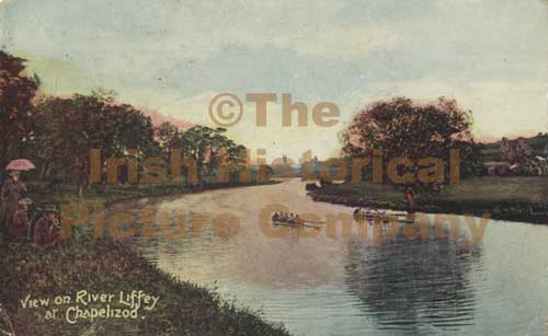 River Liffey at Chapelizod, Dublin, Ireland. old photograph showing sculling. QX-00057